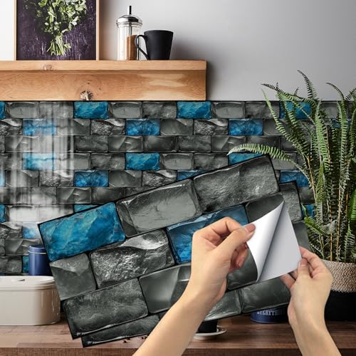 AMOYUN Tile Stickers for Kitchen - Removable Vinyl Self Adhesive Wall Tiles, Waterproof Peel and Stick Tile Backsplash for Bathroom Splashback (12cm x 24.6cm, Stone Effect