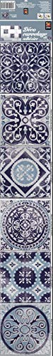 WALPLUS Vintage Blue Tiles Wall Stickers, Vinyl, Multi-Colour, 7.6 x 63.5 x 3 cm