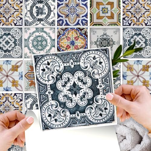 WALPLUS 48 Pcs Tile Stickers 15cm x 15cm – Peel & Stick Self-Adhesive Vinyl Wall Tiles – Waterproof & Removable Backsplash – Westminster Style – DIY Home Décor for Kitchen, Bathroom & Splashbacks