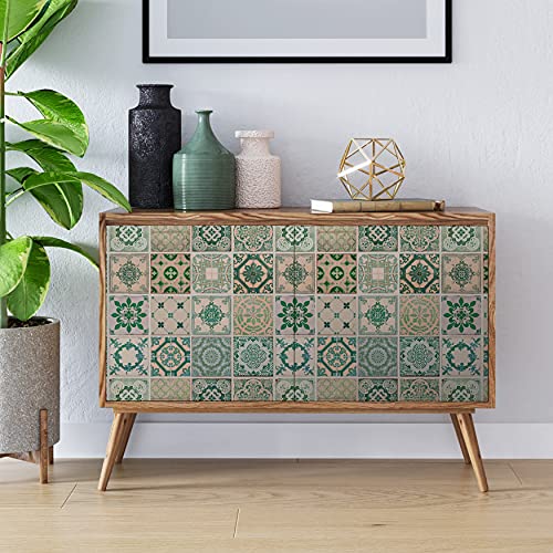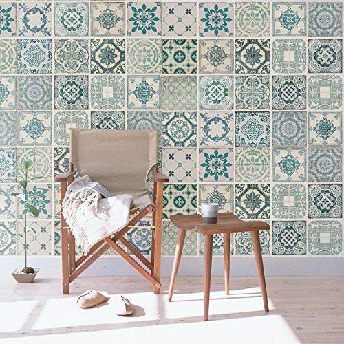 WALPLUS Vintage Green Tiles Mural Wall Stickers, Vinyl, Multi-Colour, 63.5 x 63.5 x 3 cm