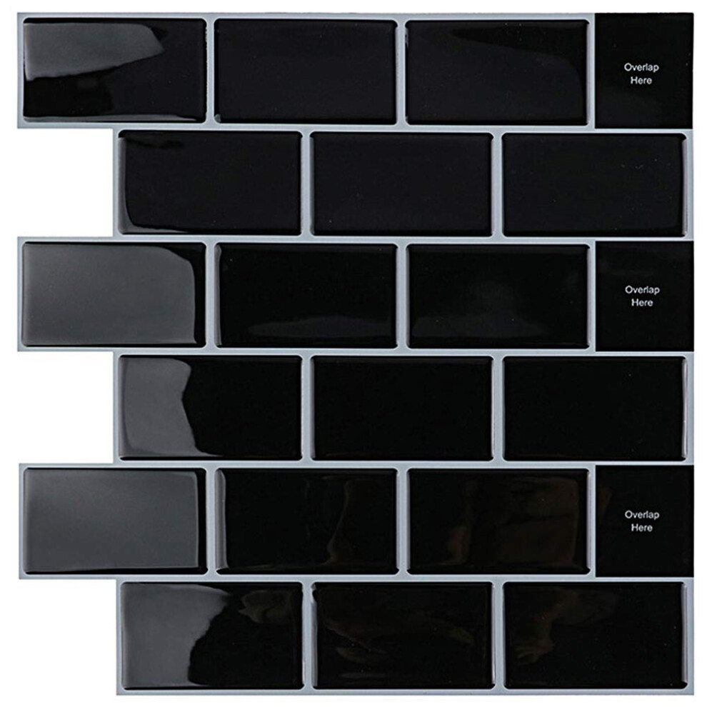 WallPops Luxury Self Adhesive Vinyl Wall Tiles SUBWAY BLACK - Pack Of 10 Tiles (0.30sqm)