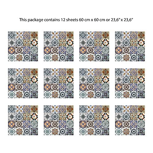 WALPLUS 12Sheets 54x54cm Wall Stickers Mediterranean Tiles Mural Art Removable Self-Adhesive Decals Vinyl Nursury Living Room Bedroom Decors Home DIY Stick on Wall Hotels Café Office Decorations