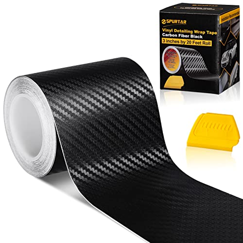 Spurtar Carbon Fibre Vinyl Wrap, 7.6 X 600cm Air-Release Adhesive Black Vinyl Wrap Chrome 3D Car Stickers Car Door Edge Guard Blackout Tape for Cars Motorcycle DIY 3 Inch X 20 ft