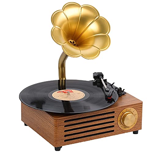 CLSDRZC Vinyl Player Vintage, Antique Big Horn Record Bluetooth Phonograph Record Player 45 Adaptor 3 Speed Turntable Subwoofer Classic Bluetooth Speaker Gramophone