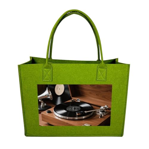 LKWSCGHM Felt Tote Bag for Women Vintage Vinyl Player Satchel Bags Large Reusable Grocery Shopping Bag Beach Handbags, Light Green-style, One Size