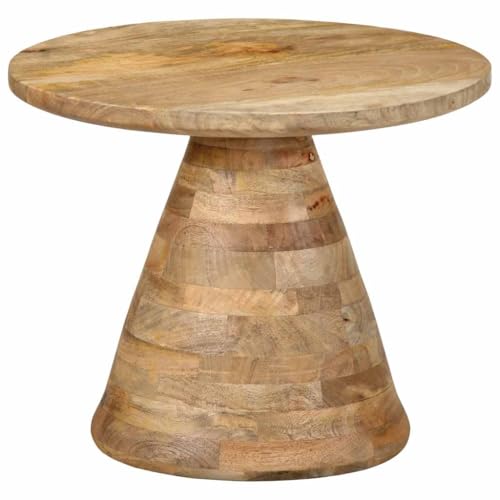 Hoopleep Round Side Table, Solid Mango Wood Construction, 50x40 cm, Robust Accent Furniture for Living Room, Bedroom, Versatile Display Stand for Plants, Photos, Vinyl Player Storage