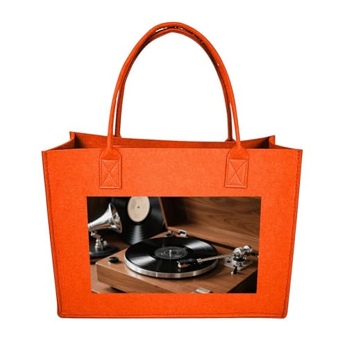 LKWSCGHM Felt Tote Bag for Women Vintage Vinyl Player Satchel Bags Large Reusable Grocery Shopping Bag Beach Handbags, Dark Gray-style, One Size
