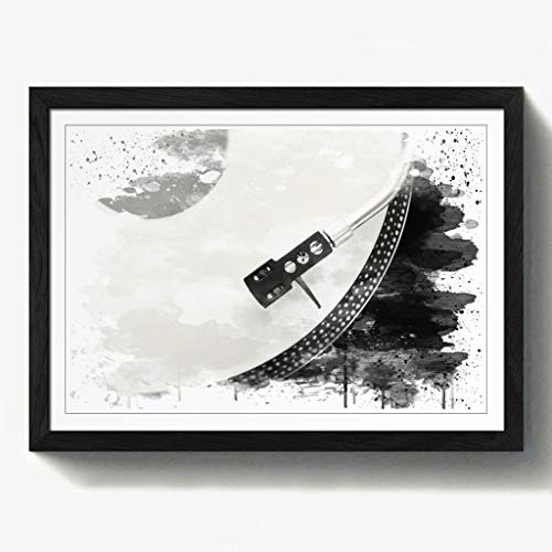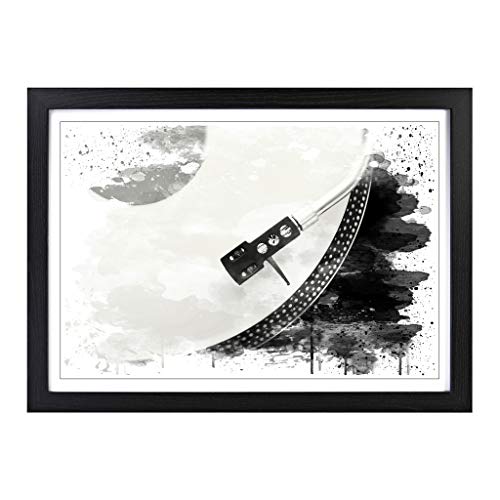 Turntable Record Vinyl Player V4 Modern Framed Wall Art Print, Ready to Hang Picture for Living Room Bedroom Home Office Décor, Black A2 (64 x 46 cm)