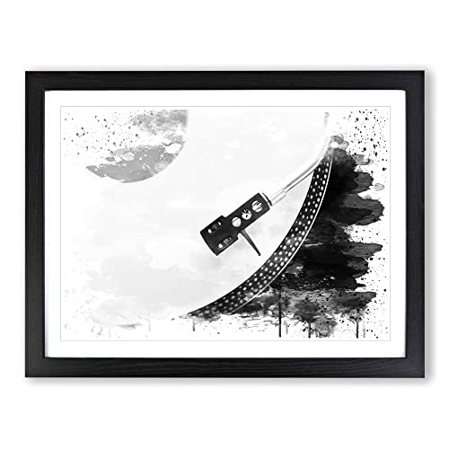 Turntable Record Vinyl Player V2 Modern Framed Wall Art Print, Ready to Hang Picture for Living Room Bedroom Home Office Décor, Black A4 (34 x 25 cm)