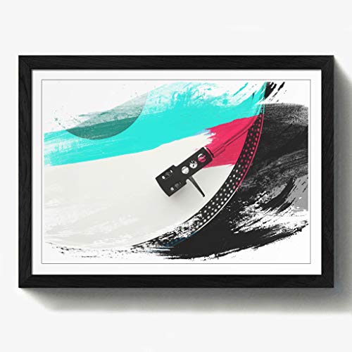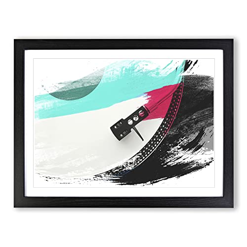 Arty Pie Framed Print Black A2 (24.5x18 Inch) Turntable Record Vinyl Player V2, Wood, Multi-Colour, 60 x 42 x 2 cm