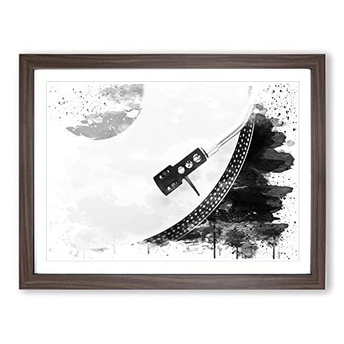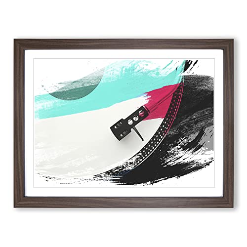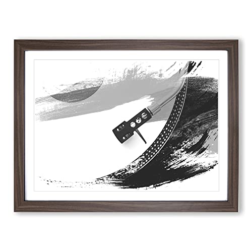 Turntable Record Vinyl Player V4 Modern Framed Wall Art Print, Ready to Hang Picture for Living Room Bedroom Home Office Décor, Walnut A3 (46 x 34 cm)