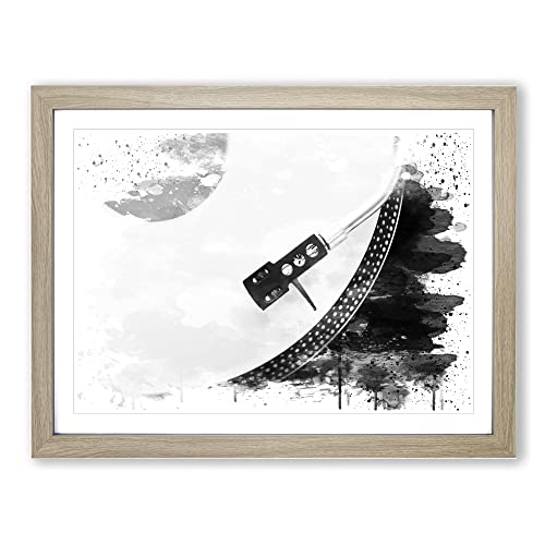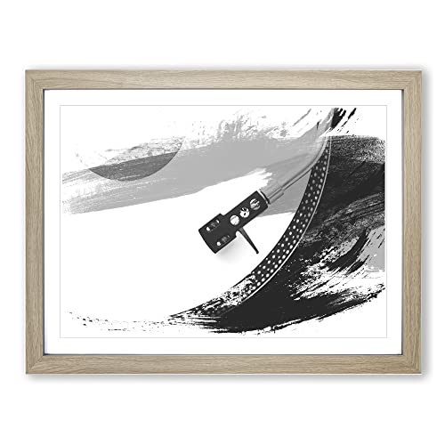 Turntable Record Vinyl Player V2 Modern Framed Wall Art Print, Ready to Hang Picture for Living Room Bedroom Home Office Décor, Oak A4 (34 x 25 cm)