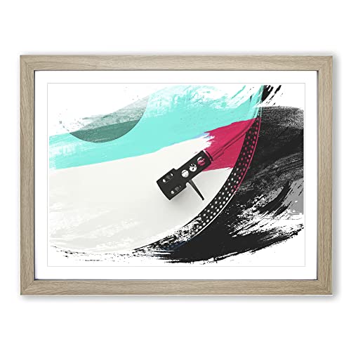 Turntable Record Vinyl Player V4 Modern Framed Wall Art Print, Ready to Hang Picture for Living Room Bedroom Home Office Décor, Oak A3 (46 x 34 cm)