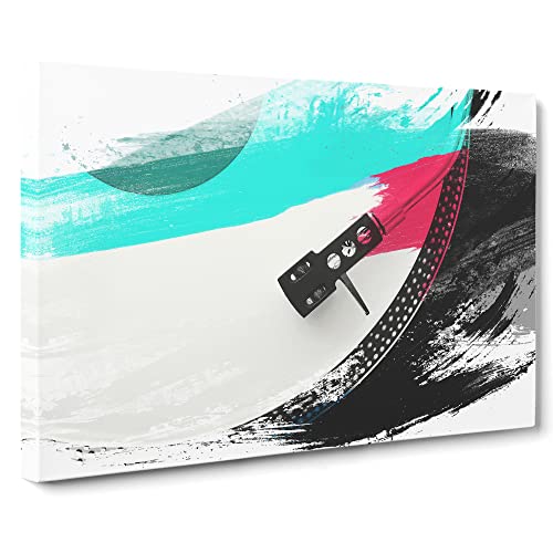 Turntable Record Vinyl Player V2 Modern Canvas Wall Art Print Ready to Hang, Framed Picture for Living Room Bedroom Home Office Décor, 76x50 cm (30x20 Inch)