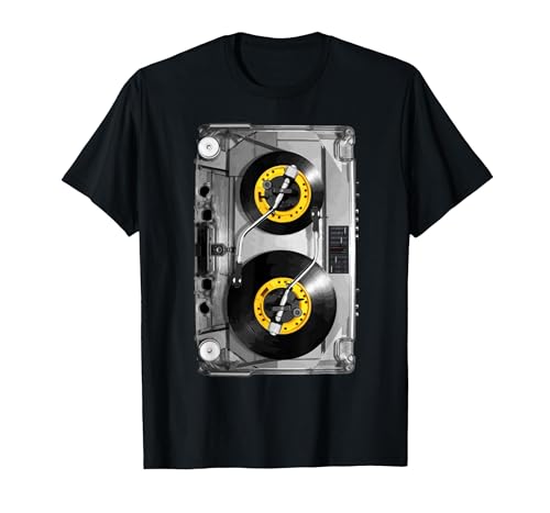 Hip Hop Rap Mixtape Cassette DJ Retro 90s DJ Vinyl Player T-Shirt, Men, Black, Large