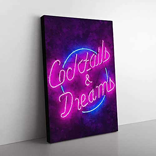 Big Box Art Cocktails and Dreams Sign Painting Canvas Wall Art Print Ready to Hang Picture, 76 x 50 cm (30 x 20 Inch), Violet, Purple, Violet