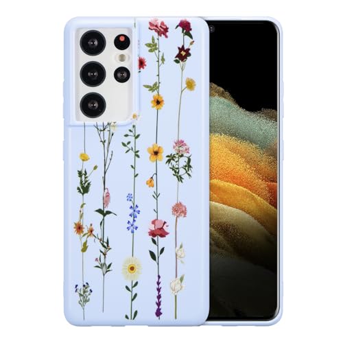 ZTOFERA Compatible with Samsung Galaxy S21 Ultra 5G (6.8") Case for Girls Women, Flexible Soft Silicone Protective Phone Case with Cute Climbing Flowers Floral Pattern Shockproof Bumper Cover, Violet