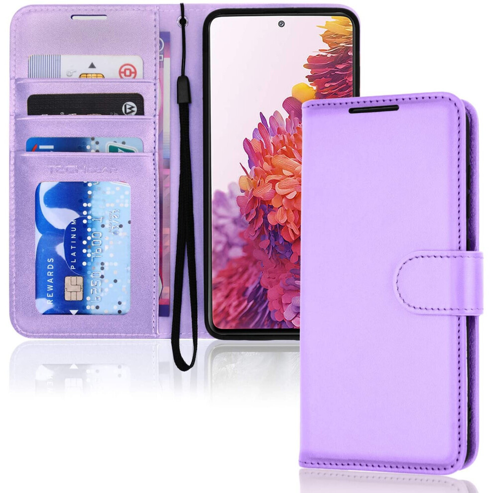 TECHGEAR Galaxy S21 Leather Wallet Case - Violet PU, Flip Wallet with 3 Card Slots, Money Pocket, Magnetic Closure, Stand & Wrist Strap (HJ8U)