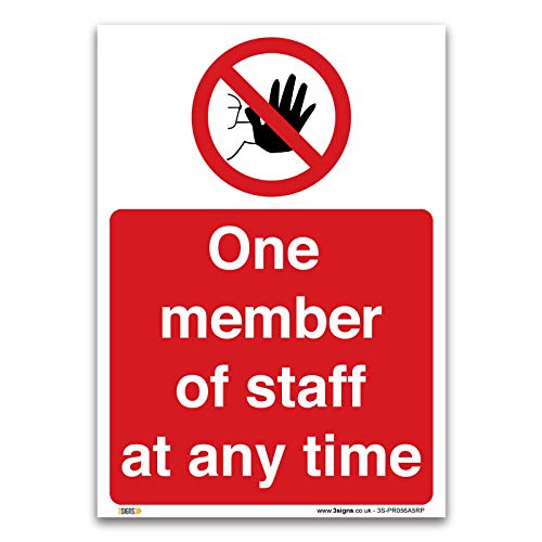 One member of staff at any time Sign, A5 210x148mm, 1mm Rigid Plastic, Prohibition Virus Protection Safety