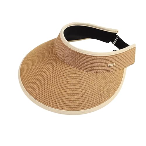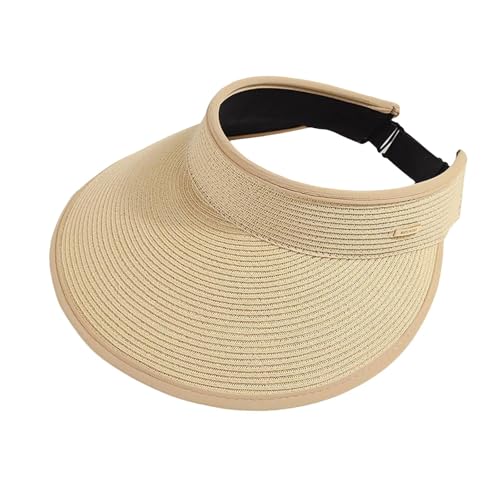 Cowboy Hats For Women,Womens Sun Visor Hats, Packable Wide Brim Ponytail Beach Hat Straw Visor Summer Beach for Womens (Khaki, 60cm)
