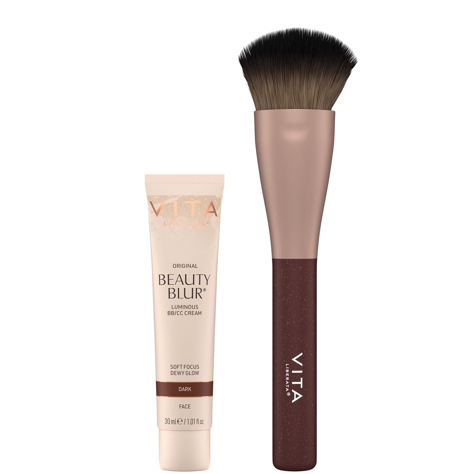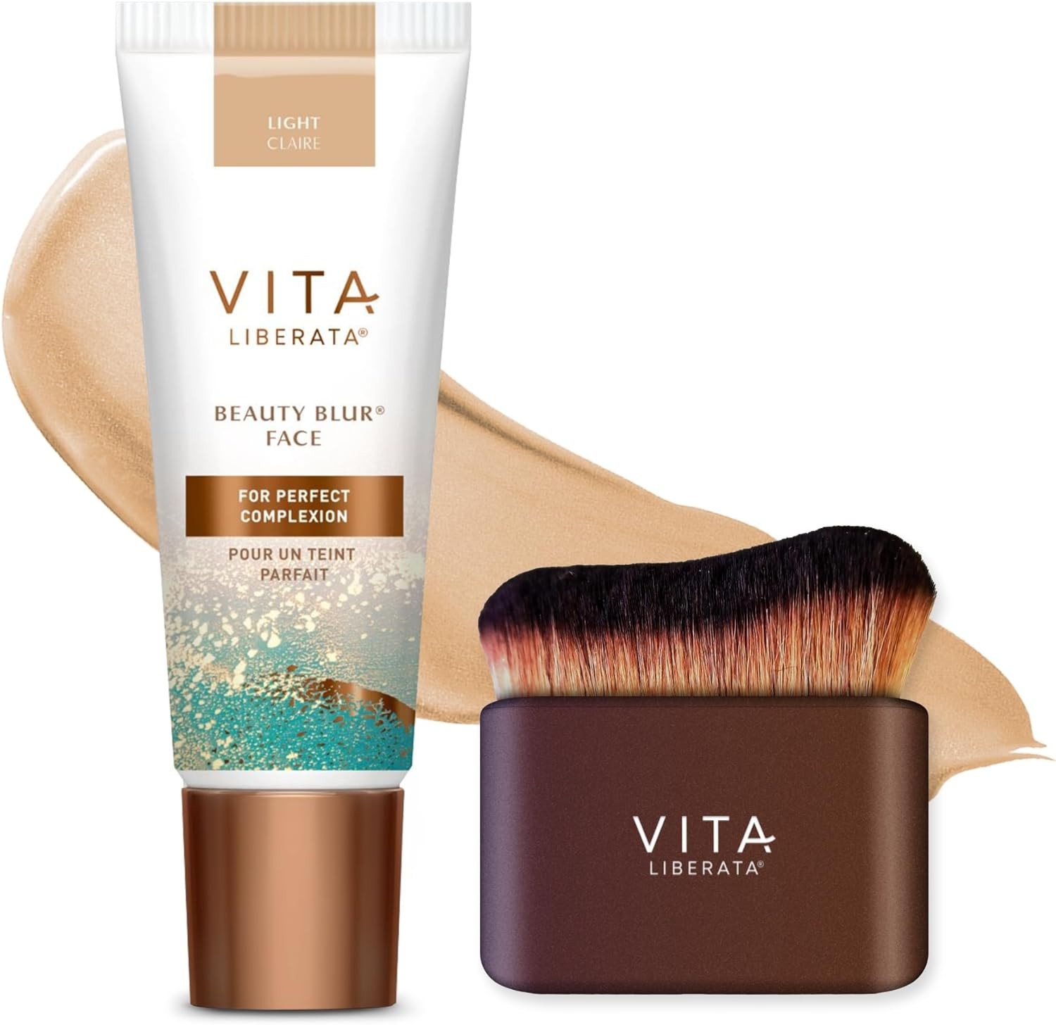 VITA LIBERATA Beauty Blur Light 30ml & Brush Bundle, BB/CC Cream, Hydrating complexion booster, Radiant Glow & Flawless Finish, Colour Corrector, Tinted Primer, Flawless application blending brush