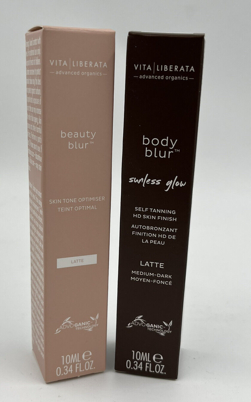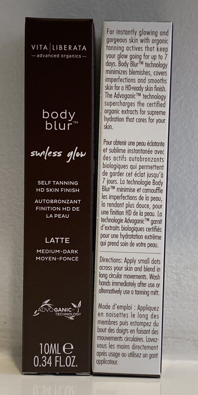 2x VITA LIBERATA BODY BLUR SUNLESS GLOW SELF TANNING HD SKIN FINISH LATTE 10ml
