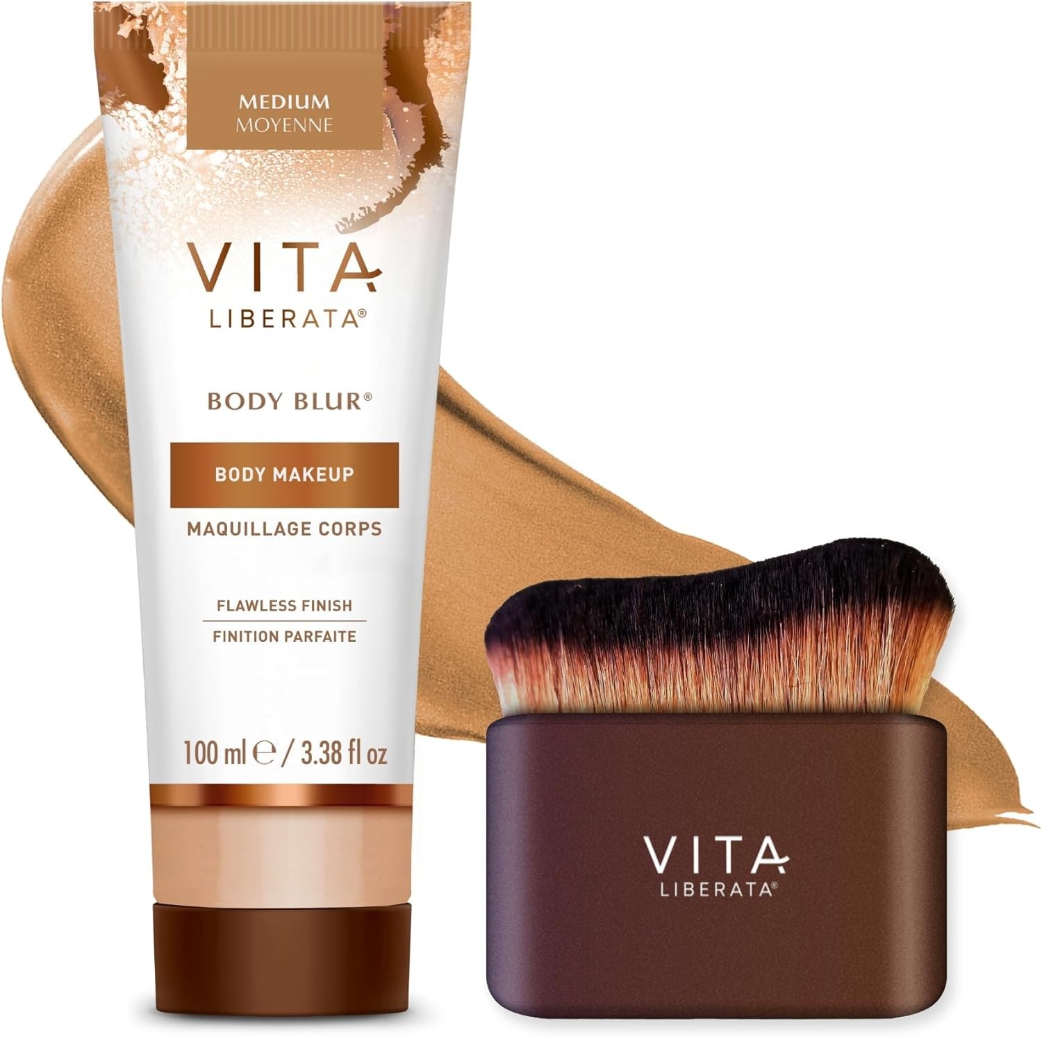 VITA LIBERATA Body Blur Medium 100ml & Brush Bundle, Leg & Body Makeup, Wash Of
