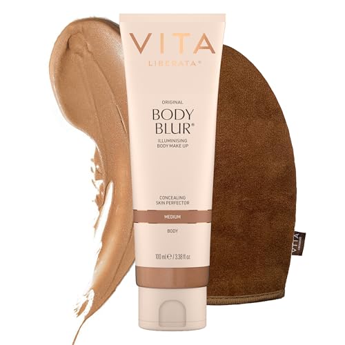 VITA LIBERATA Body Blur Medium 100ml & Mitt Bundle, Leg & Body Makeup, Wash Off Instant Tan, Streak Free Application Blending Mitt, Water resistant, Disguise Imperfections, Flawless Finish