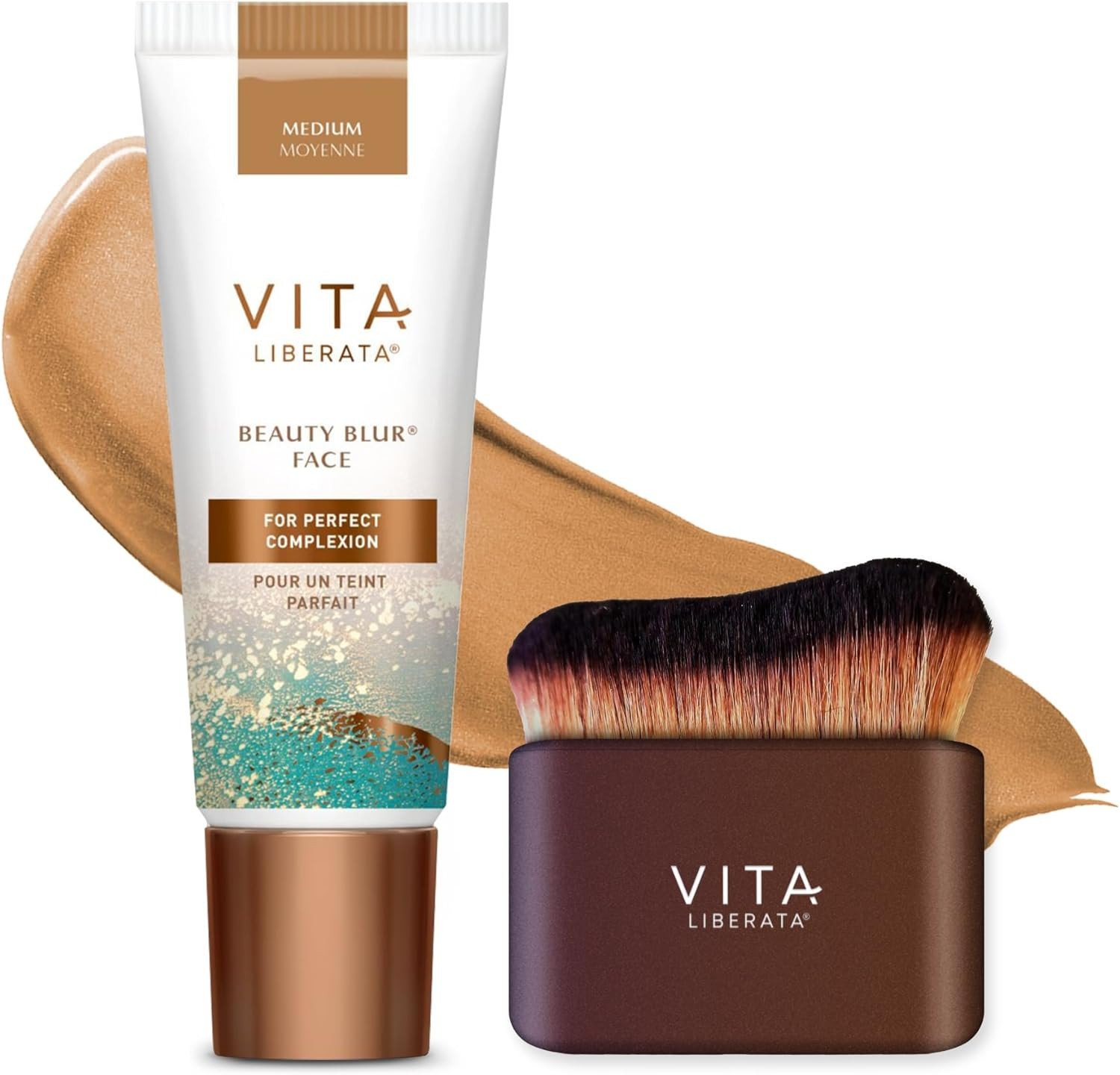 VITA LIBERATA Beauty Blur Medium 30ml & Brush Bundle, BB/CC Cream, Hydrating co