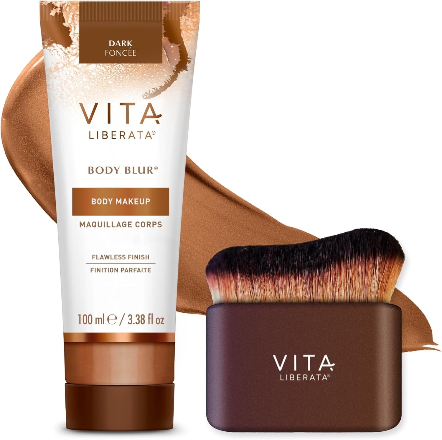 VITA LIBERATA Body Blur Dark 100ml & Brush Bundle, Leg & Body Makeup, Skin Perf