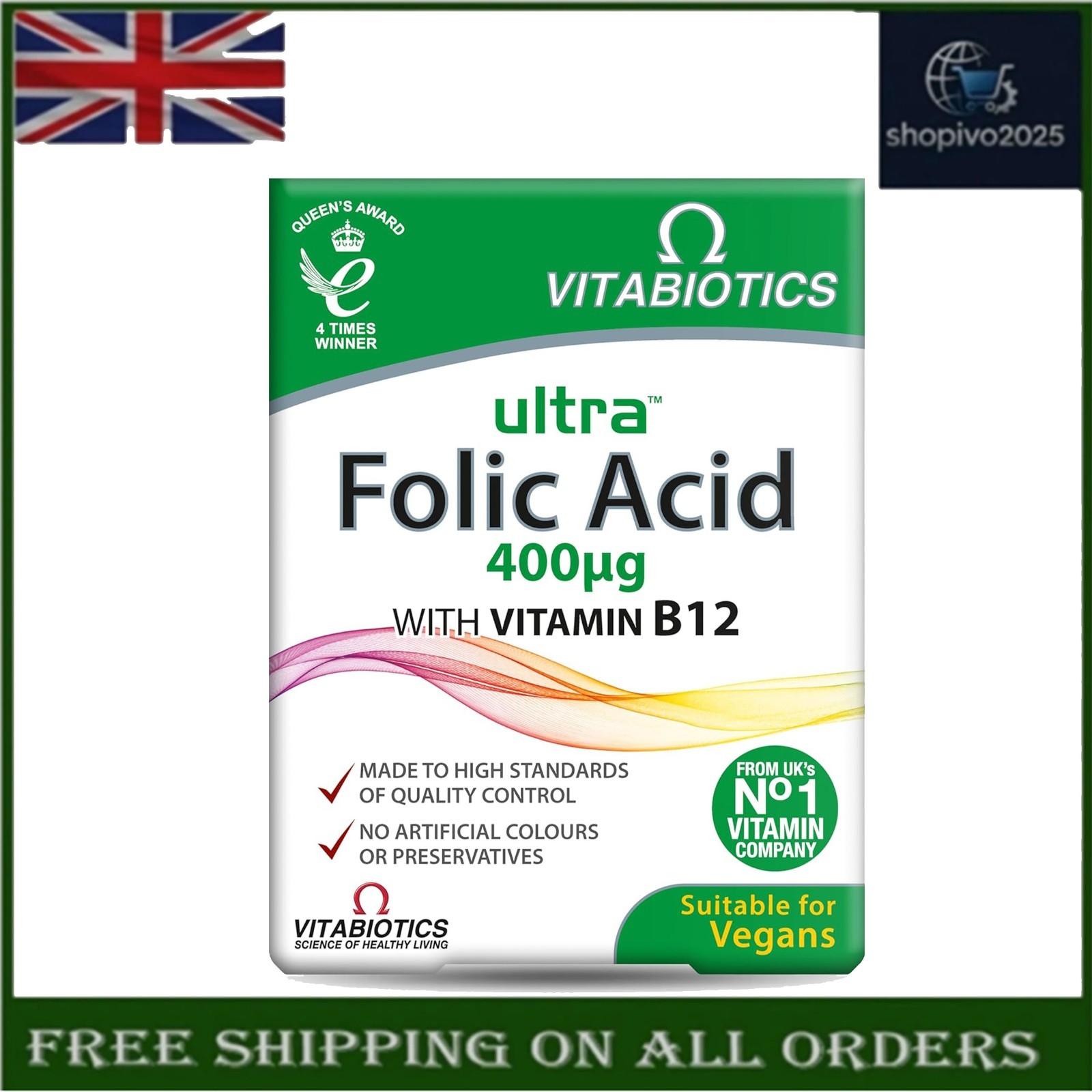 Vitabiotics Ultra Folic Acid Tablets 400 mcg Vitamin B12 | 60 Tablets