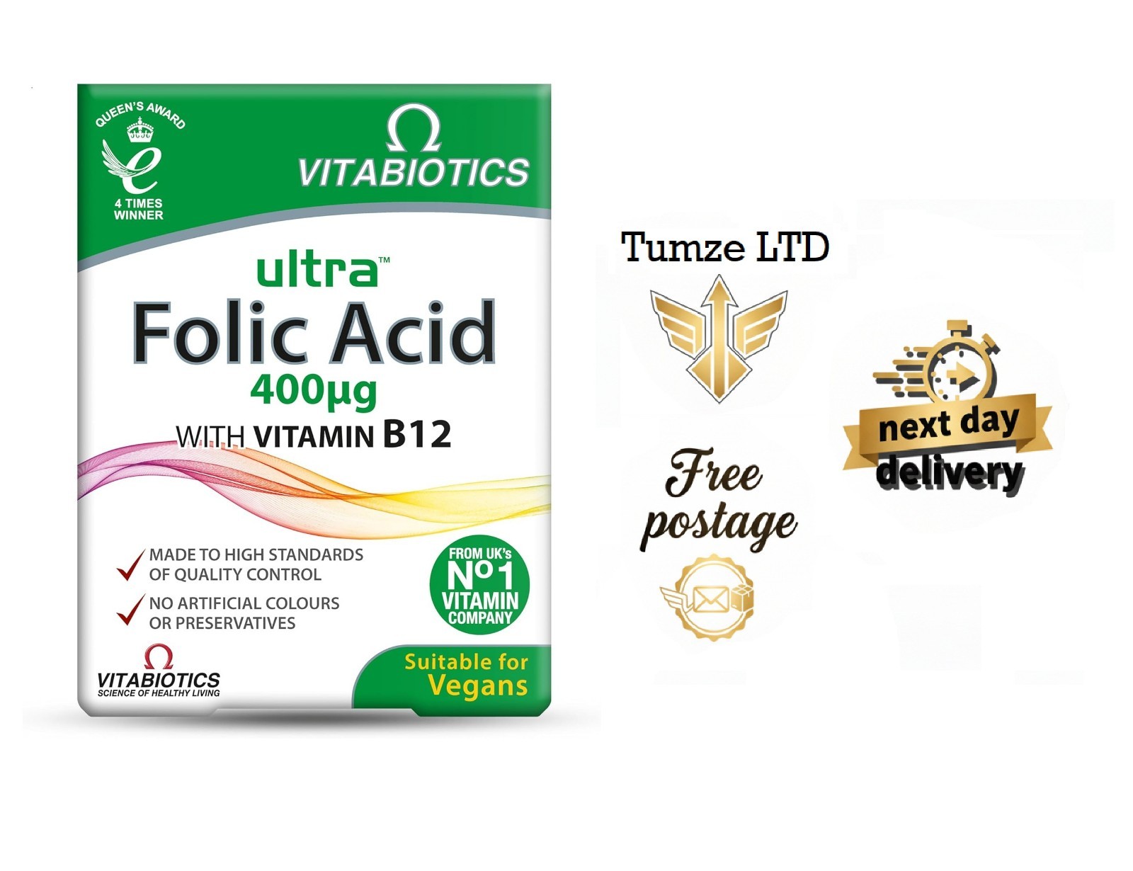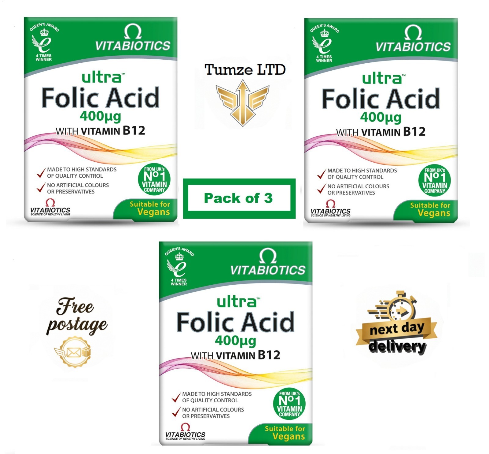 Vitabiotics Ultra Folic Acid 400μg with Vitamin B12 - 60 Tablets (Pack of 3)