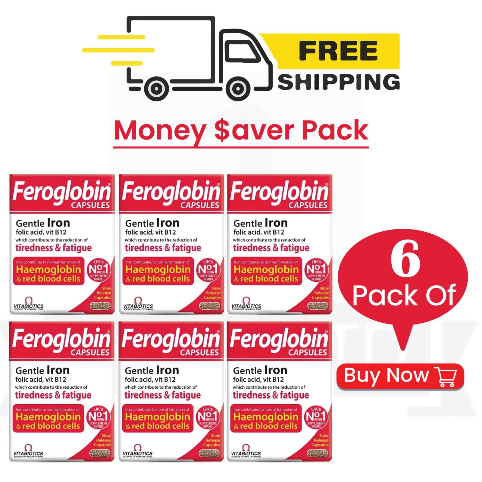 Vitabiotics Feroglobin B12 Slow Release 30 Capsules - 6 PACK