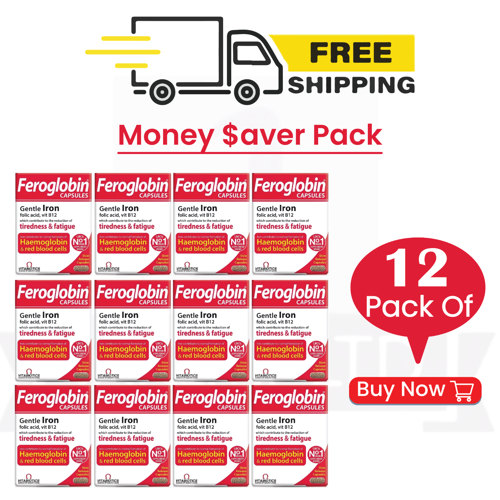 Vitabiotics Feroglobin B12 Slow Release 30 Capsules - 12 PACK