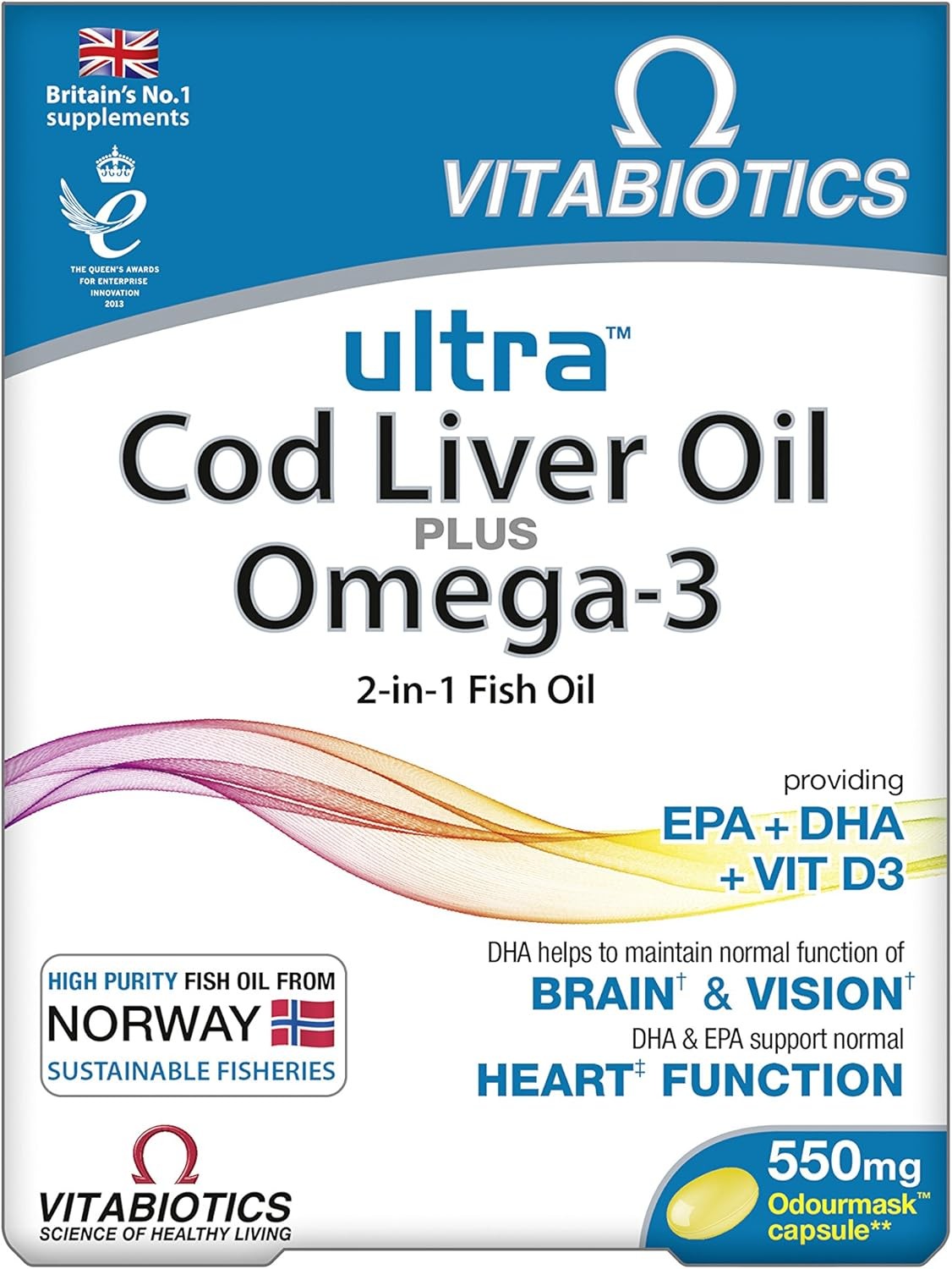 Vitabiotics Ultra Cod Liver Oil Capsules 60 Count Omega-3 Vitamin D & E