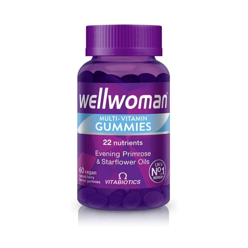 Wellwoman Vegan Berry Gummies by Vitabiotics - Delicious Pack of 60 Count.