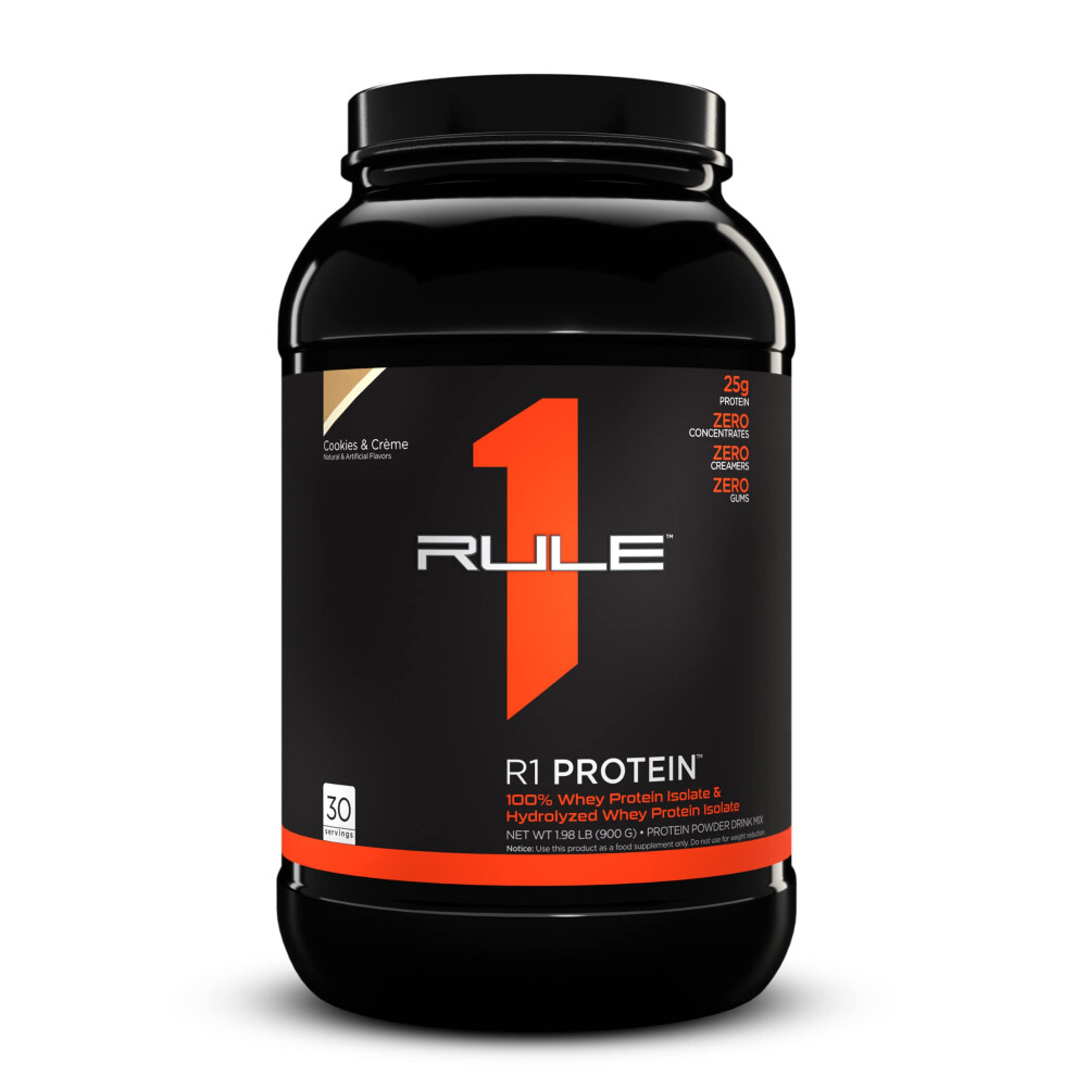 Rule One Proteins R1 Protein- cookies crAme 25g Fast-Acting Super-Pure 100 Isolate and Hydrolysate Protein Powder with 6g BcAAs for Muscle growth