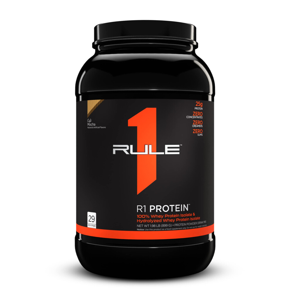 Rule One Proteins, R1 Protein - cafe Mocha, 25g Fast-Acting, Super-Pure 100 Isolate and Hydrolysate Protein Powder with 6g BcAAs for Muscle growth an