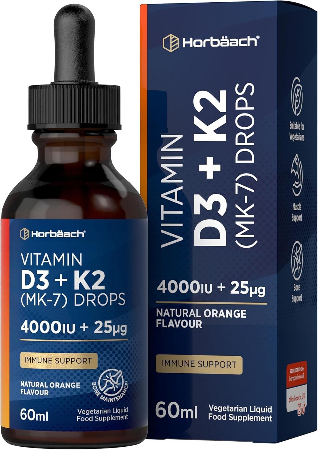Vitamin D3 K2 MK7 Drops High Strength Vitamin D3 4000Iu and K2 as MK7 25Ug 60ml