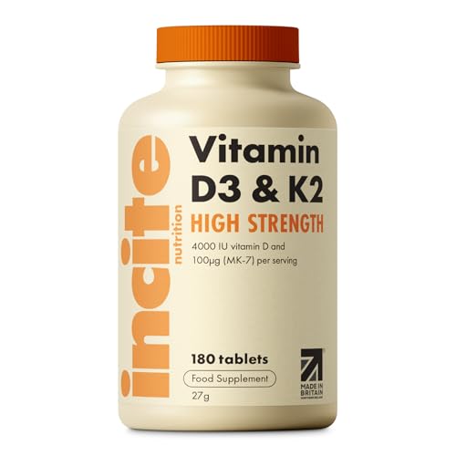Vitamin D3 K2 (MK7) 100ug - 6 Month’s Supply - High Strength 180 Tablets - Premium Vegetarian Tablets - Suitable for Vegetarian - Vitamin D3, 4000iu & K2 - Made in UK