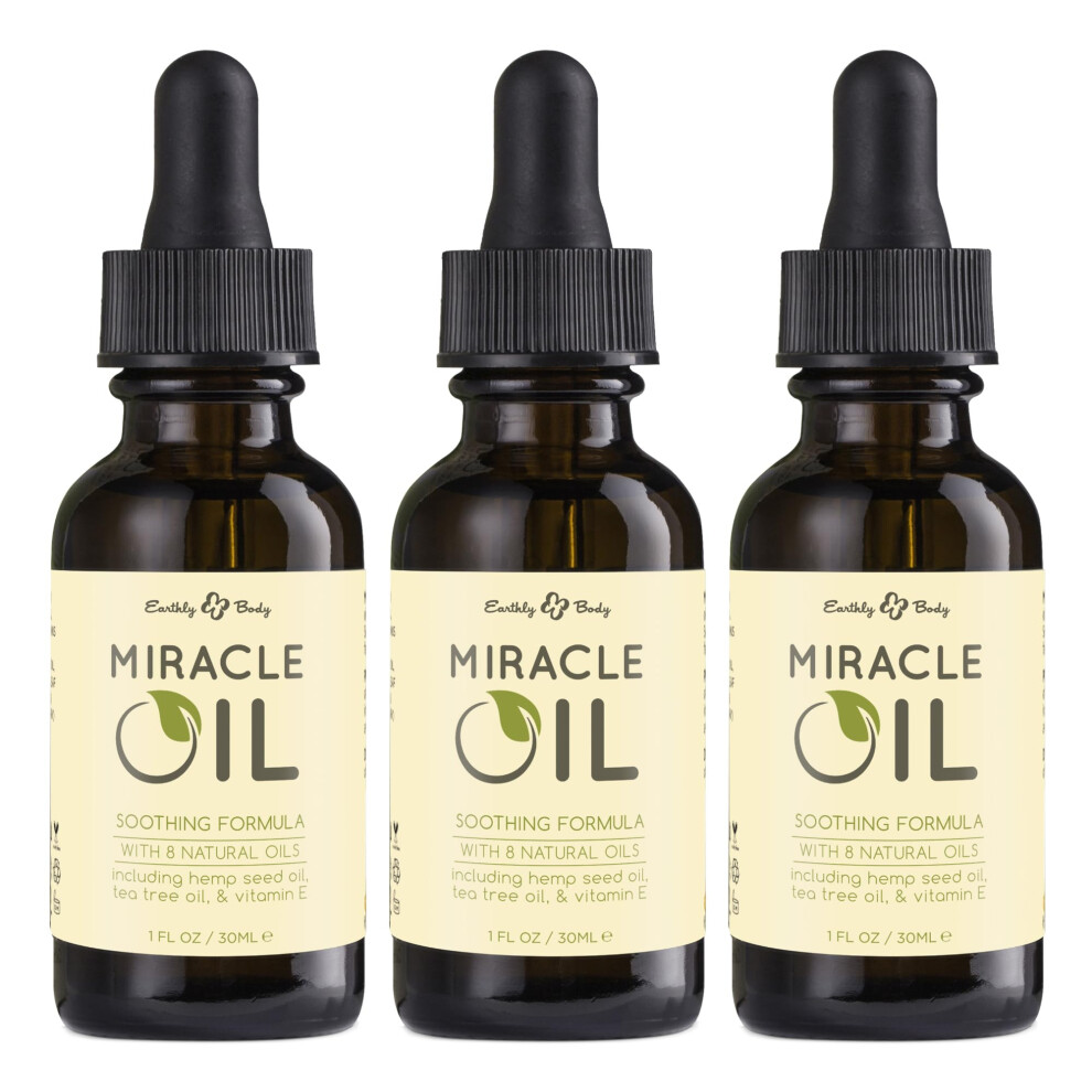 Earthly Body Miracle Oil 1 fl. oz. - 3 Pack - 100% Natural Tea Tree Oil Hemp Seed Oil & Vitamin E - Moisturizer Calms Skin Irritations Helps Smoot