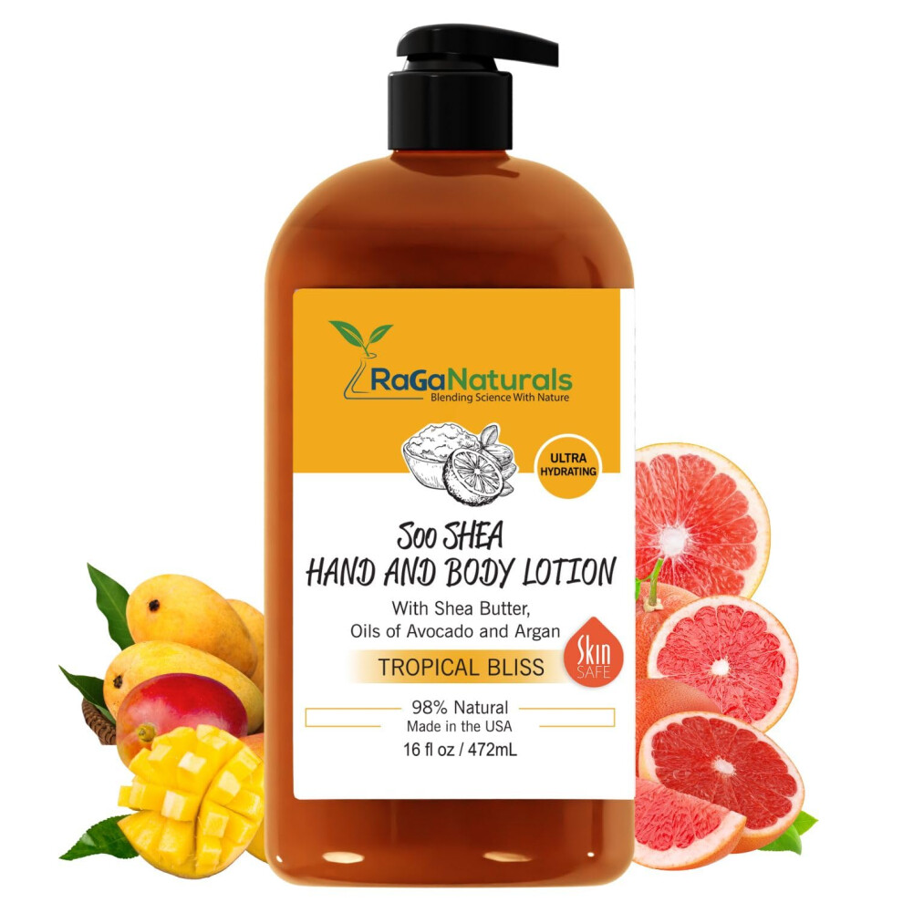 Tropical Body Lotion - Shea Butter Argan Avocado Oil & Vitamin E - Natural Plant based Non-Greasy Vegan Cruelty-Free Nourishing Moisturizer Hy