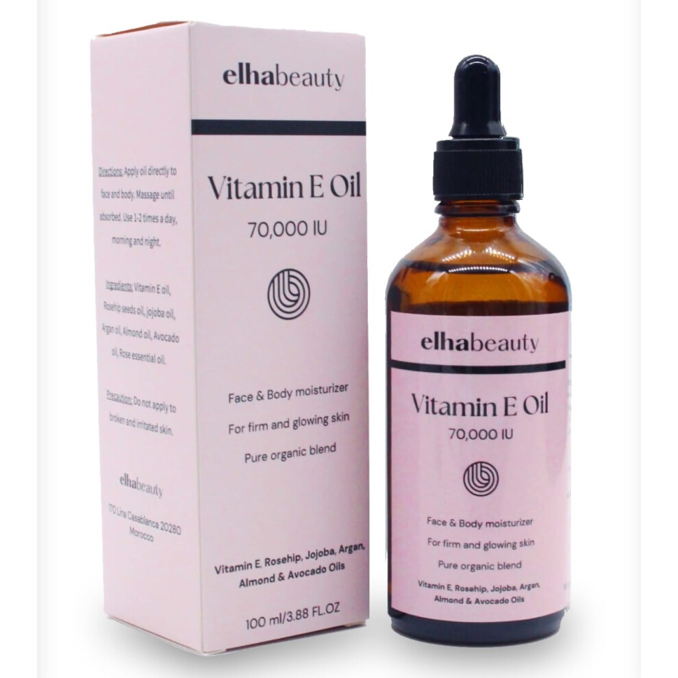 Elhabeauty Vitamin E Oil 70000 IU Face Body Moisturizer with Rosehip Jojoba Almond and Avocado Oils for a firm and healthy Skin 388 fl oz