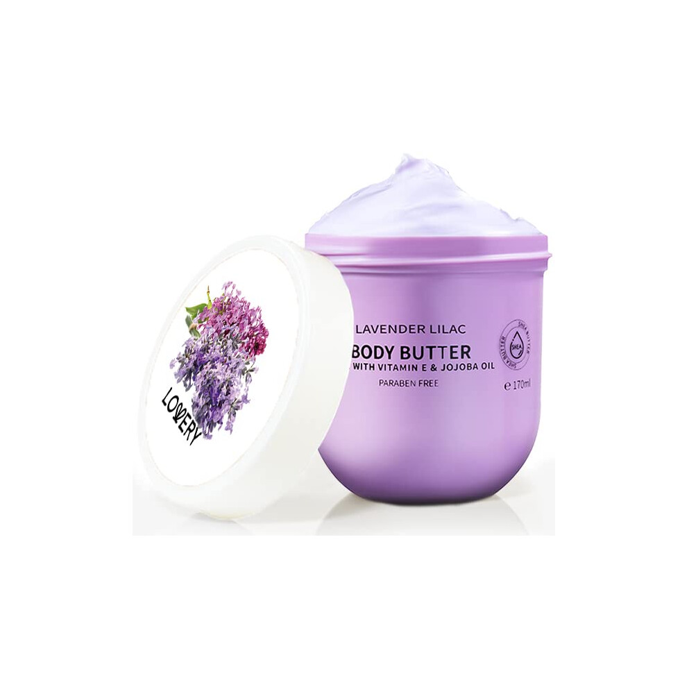 LOVERY Lavender Lilac Body Butter - Shea Cream with Jojoba Oil & Vitamin E - Hydrating Natural Moisturizer for Hands - 12 Fl Oz