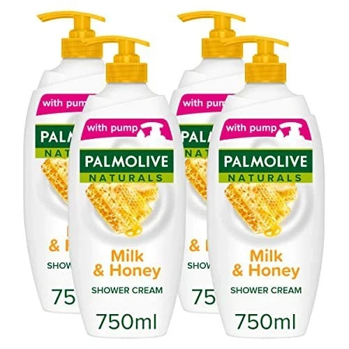 Palmolive Naturals Milk & Honey Shower Gel Cream 4x750ml, vitamin E body wash to nourish skin, leaves skin feeling soft