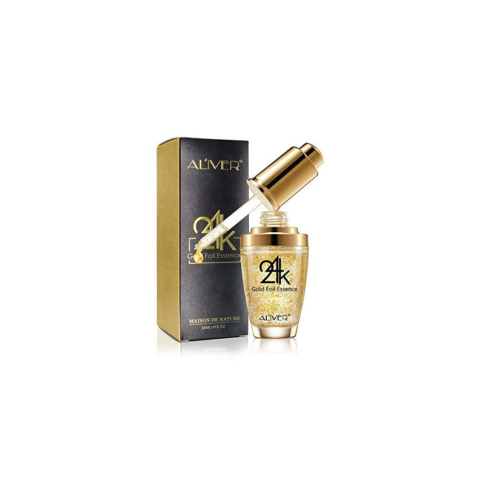 24K Gold Essence Collagen Face Serum Moisturizer Enriched with Vitamin C Serum, Vitamin E Cream for Skin care with Hyaluronic Acid Serum 1 FL OZ (30mL