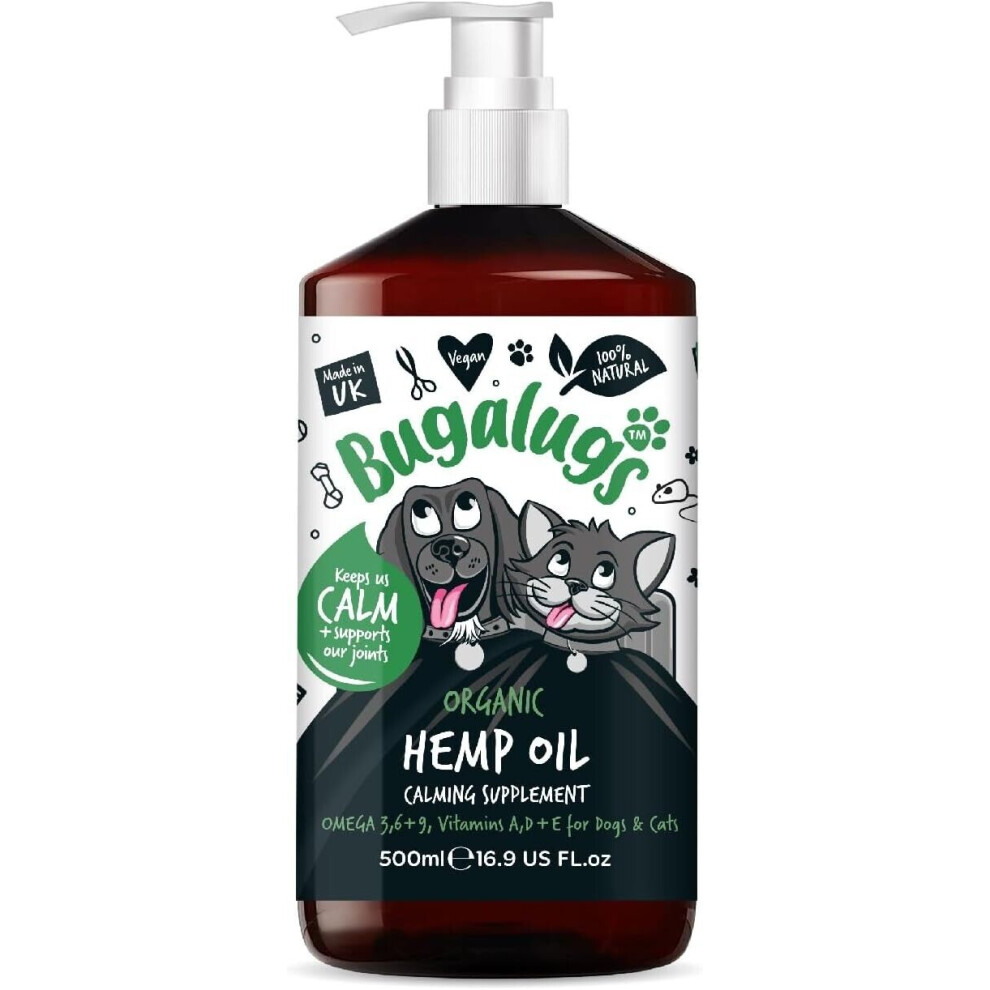 BUGALUGS 500ml Calming Hemp Oil for Dogs, Cats & Pets - Omega 3,6,9, Vitamins A,D,E | Supports joints, coat & skin, stress relief | BLSMHPL500