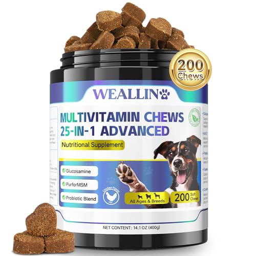 WEALLIN 25-in-1 Multivitamin Supplements for Dogs - Multi-Vitamin Treats For Dogs Multivitamin Chewable Dog Vitamins For Heart,Skin,Coat,Natural Balance,Digestion for All Ages 200 Chews Chicken Flavor