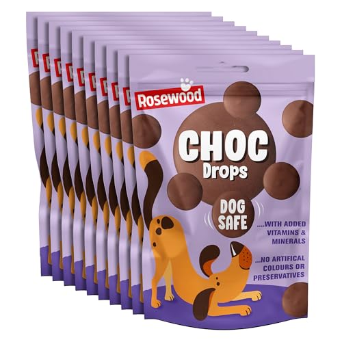 Rosewood Choc Drops for Dogs - Dog Safe Chocolate Treat with Added Vitamins, Cocoa Free, Training Treats for Small, Medium, Large Dogs & Puppies (Case of 10 x 200g)