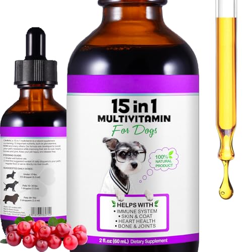 15 in 1 Dog Multivitamin Drops for Dogs,Dog Vitamins & Supplements Natural Dog Multivitamins and Minerals - Glucosamine, MSM for Dogs, Hip & Joint, Immune System, Skin & Coat, Gut Health